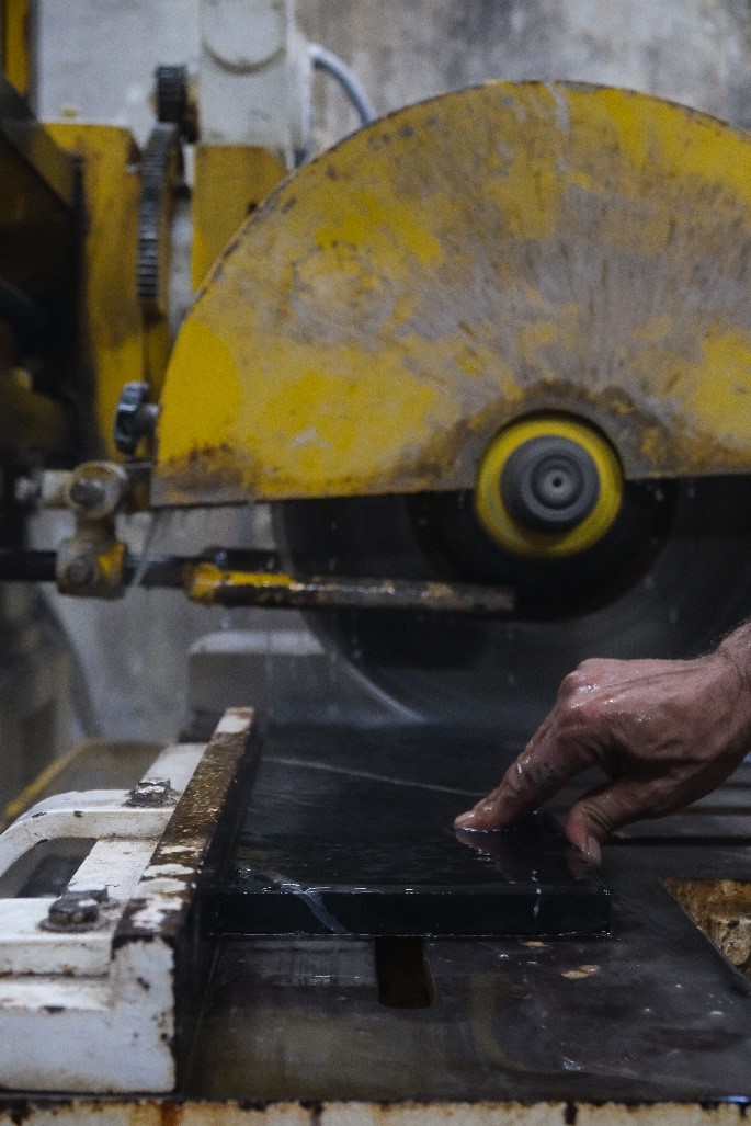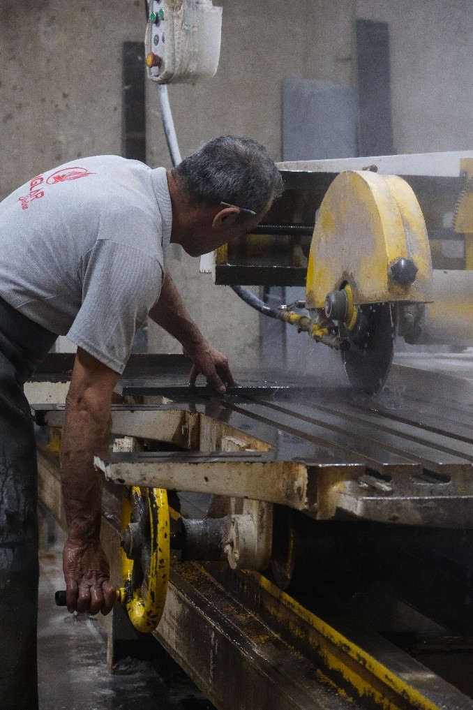 Hazırlanmış olan hazneye uygun ölçülerde mermer ustası tarafından müşterinin seçtiği model doğrultusunda metraj çıkarılır, malzeme uygun ölçülerde kesilir ve birleştirilmesi yapılır.